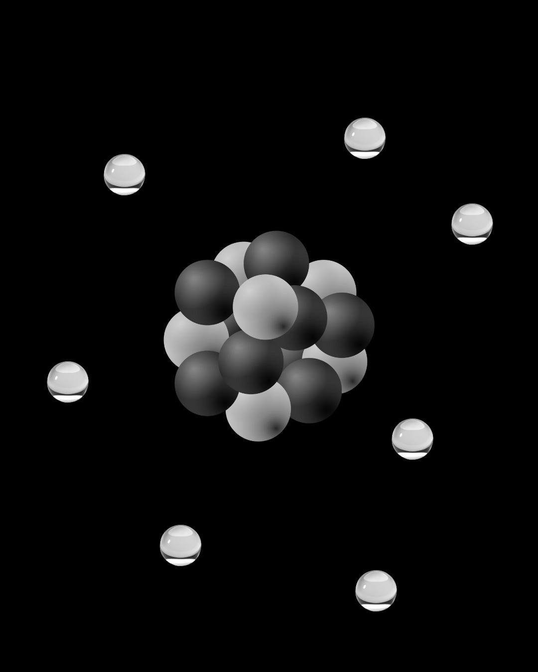 Likewise, every atom has a core (nucleus) that is surrounded by a fringe (a cloud of electrons).